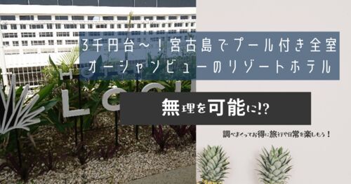 我が家の場合、沖縄で宿泊するホテルは、長めに滞在したいので、大体格安で探すようにしています。今年宮古島に行ったのですが、ホテルを検討する際に、子供から 「プールのあるリゾートホテルに泊まってみたい!」とのリクエストが。 うちの予算は、1人1泊…