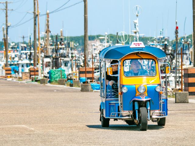 三浦半島でトゥクトゥクのレンタルが出来ます。4人乗りは三崎港営業所で、7人乗りは三浦海岸営業所で借りることができます。