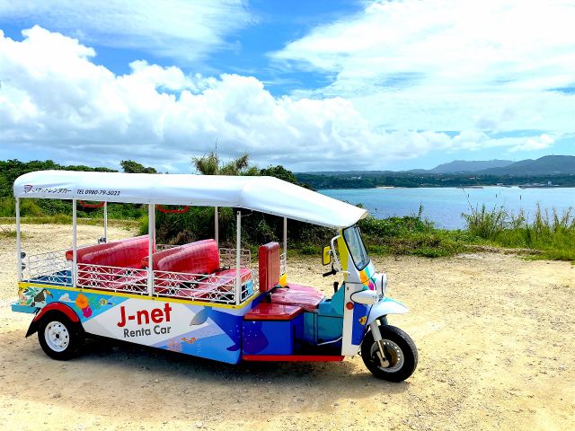 宮古島ではJネットレンタカーでトゥクトゥクをレンタルできます。こちらのトゥクトゥクは7人まで乗ることができます。